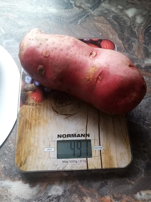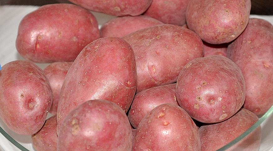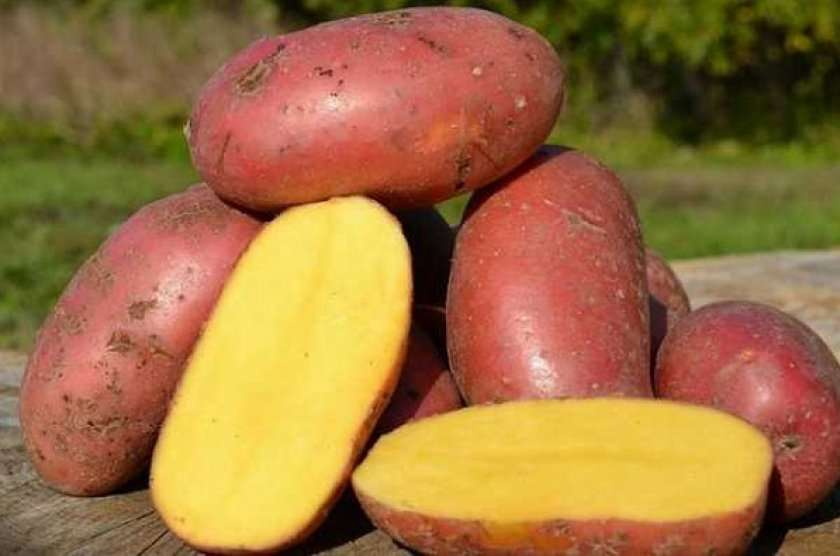 Кожна картоплина трохи більша за стандартну. Шкірка рожева, м’якоть щільна, смак — насичений.