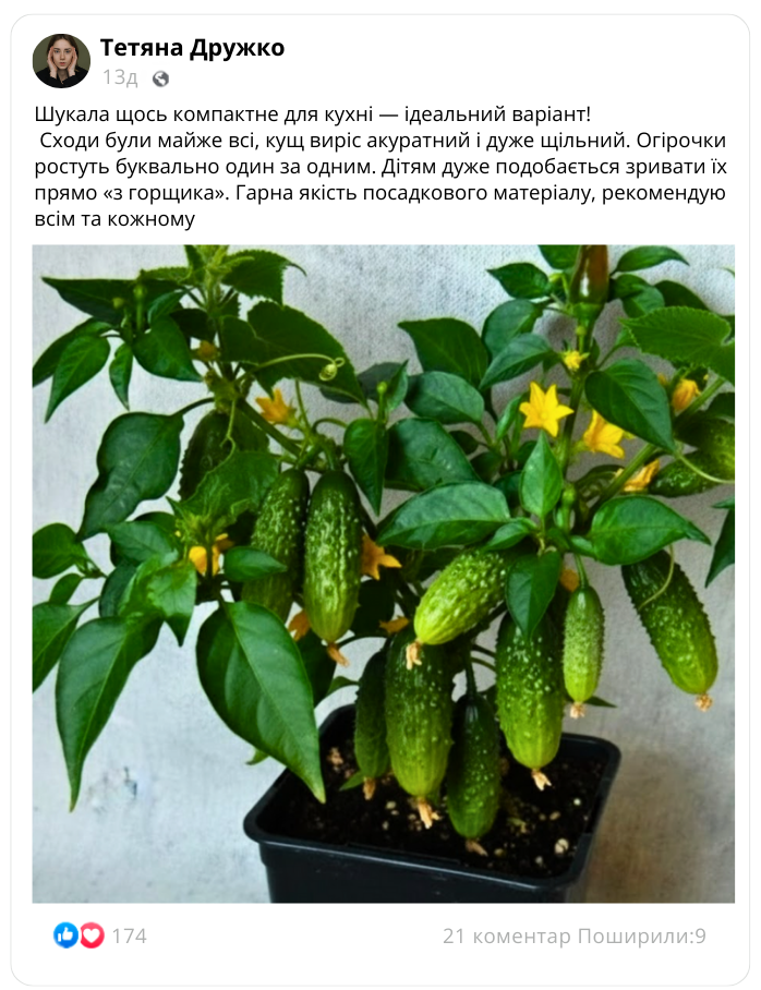 Як виглядає огірок «Кіото» в реальних оселях покупців?