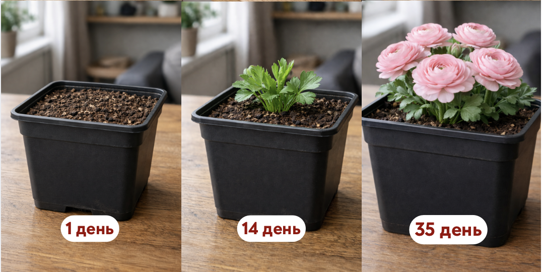 Ви повторюєте перевірений сценарій старту ранункулюса, який уже працює в інших — у квартирі.