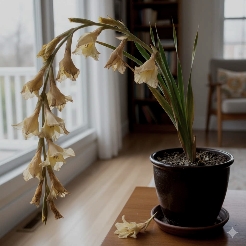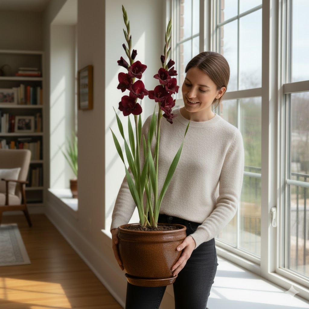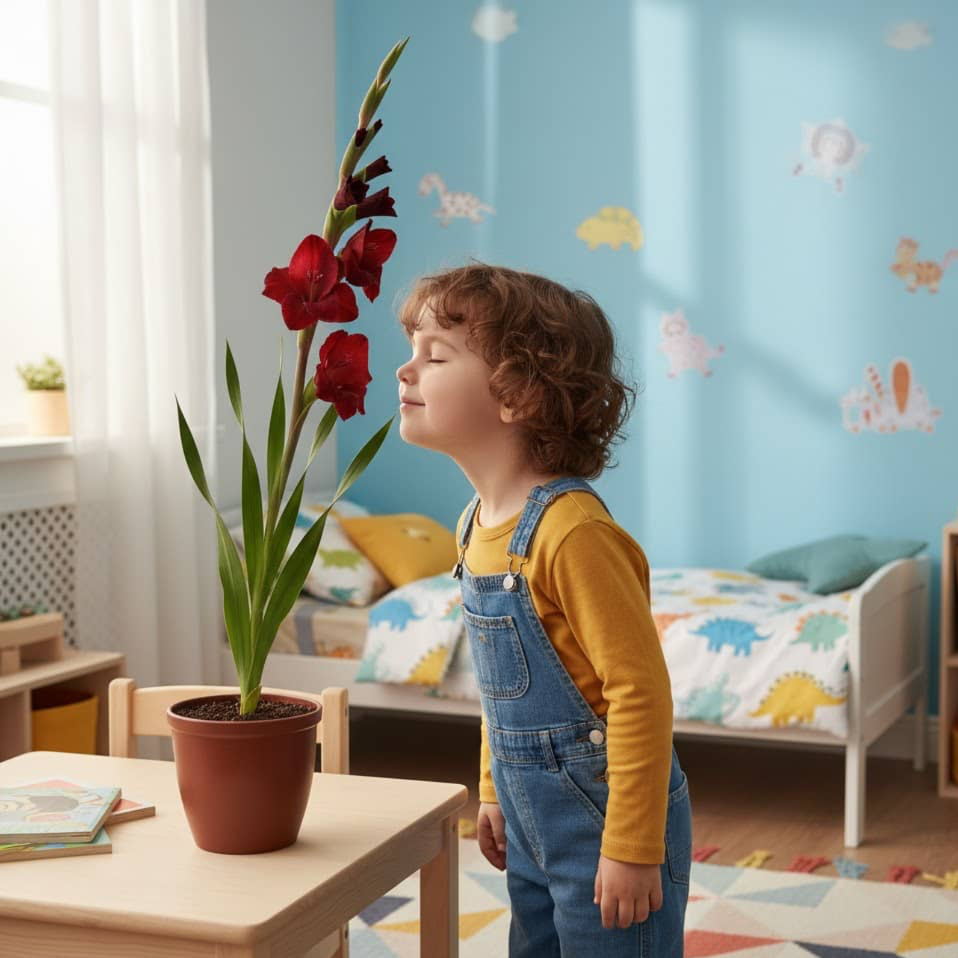 Цей кімнатний гладіолус чудово почувається у горщику та стає яскравим акцентом у квартирі чи офісі.